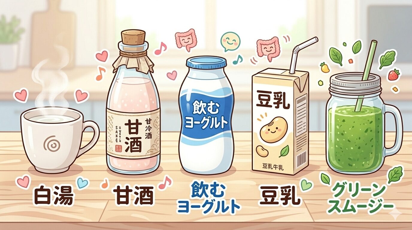この3つを意識して選ぶだけで、普段の飲み物が腸活ドリンクに変わります。